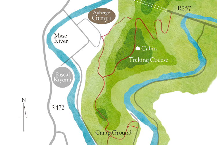 裏山の遊歩道を歩き、目の前の川で遊ぶ。緑を吸い込み、せせらぎを聴く。眺めるだけではない山水の恵が、我々の五感を呼び起こし、心身を愉しませるのです。